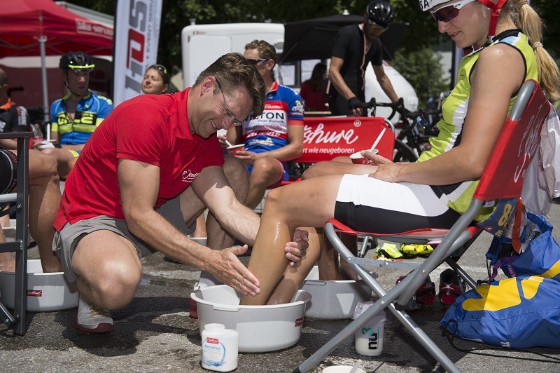 „Etappen-Events sind für die Sportler echte Kohlenhydratschlachten“, sagt Geschäftsführer Roland Jentschura. Dem Diplom-Ernährungswissenschaftler ist wichtig, dass alle Teilnehmer bestmöglich versorgt werden – ernährungsphysiologisch und hinsichtlich der Regeneration. Deshalb gibt es für alle Teilnehmer auch MorgenStund’ im sogenannten Bettencamp, basische Snacks auf der Strecke und Zielverpflegung mit MorgenStund’, TischleinDeckDich und WurzelKraft. Jentschura: „Wir bieten den Sportlern einerseits komplexe Kohlenhydrate, das ist der Haupttreibstoff für so ein Etappen-Event, und die pflanzlichen Vitalstoffe in der WurzelKraft sind wie Öl für den Motor – damit läuft es einfach reibungslos.“ Außerdem gibt´s basische Fußbäder zur Regeneration nach jeder Etappe, damit die Sportler am nächsten Tag wieder fit durchstarten konnten.