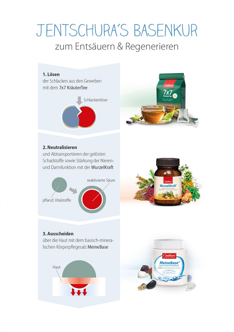 Fordern Sie hierzu gerne unsere Broschüre „Jentschura`s BasenKur“ inklusive des 4-Wochen-Erfolgsplans an.