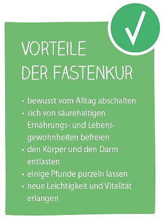 Wenn möglich, sollte in dieser Zeit unter anderem auf Schweinefleisch, Weißmehl, Zucker, aber auch Fast Food und Softdrinks verzichtet werden. Zudem sind ausreichend Bewegung und Entspannungsmomente wichtige Bestandteile in dieser Zeit, um Körper und Geist in Einklang zu bringen. Wollen Sie die Kur intensiver gestalten, können Sie Ihre Ernährung während der Kurphase mit drei weiteren Varianten kombinieren:
