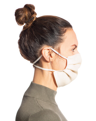 Die Maske an Mund und Nase anlegen und mit den Gummibändern am Hinterkopf fixieren. Je nach Kopfform und -größe können die oberen Gummibänder über oder unter den Ohren getragen werden – für optimalen Halt und individuellen Tragekomfort.
