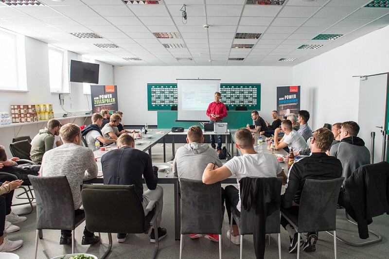 „Bleibt basisch – seid erfolgreich!“ – anhand dieser Aussage erklärte Diplom-Ernährungswissenschaftler Roland Jentschura der Mannschaft sowie dem Trainerstab unter Benno Möhlmann, wie wichtig eine ausgeglichene Säure-Basen-Balance für eine natürliche Leistungssteigerung ist. In seinem Vortrag machte der Experte deutlich, dass das Training allein nur der Reiz zur Verbesserung der Leistung ist. Die Leistungssteigerung selbst erfolge erst nach dem Training während der Regeneration und durch eine bewusste Ernährung und gezielte Entsäuerung. Diesen wichtigen Erkenntnissen für den Erfolg der Mannschaft lauschten vor allem die Neuzugänge, aber auch die „alten Hasen“ mit gespitzten Ohren.